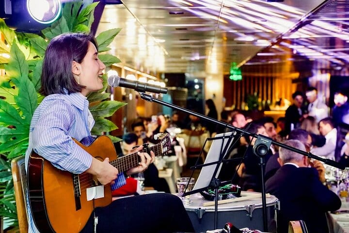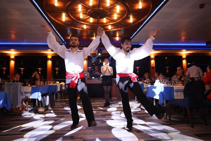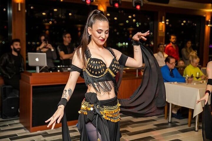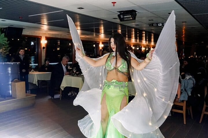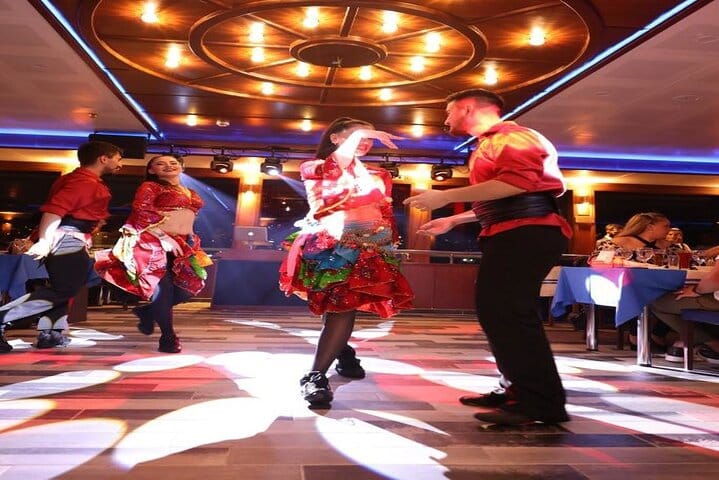 Cruise the Bosphorus while enjoying dinner and a show. Enjoy a variety of food and drinks while being entertained by a Turkish night show. Additionally, move comfortably at separate tables with our special table concept. You will be amazed by the view of Istanbul's historical buildings illuminated at night. Take photos and enjoy the sparkle of the city.
