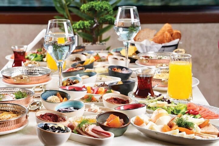 Get ready for a magnificent breakfast cruise on the Bosphorus accompanied by music. Enjoy a traditional Turkish breakfast at a table reserved for you on a luxurious ship. Have a pleasant day accompanied by violin and piano while having breakfast in this magnificent view. Watch the peaceful view of the sea while sipping your coffee.