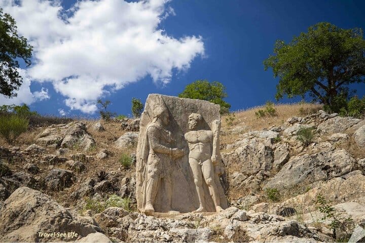 The Secrets Of The Commagene Kingdom Mount Nemrut the legend is famous for its giant mousalea and God statues which were built for Commagene King; “Antiochus I” who ruled in Adıyaman except of its height size. The king have these statues and mousalea done to show his appreciation for the Gods and his own ancestors. Another interesting point is here; there are two different sets of the same group of statues. One group of them welcomes the rise of the sun and the others welcomes the sunset. Isn’t it gorgeous!